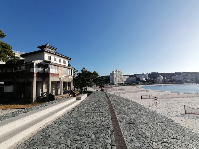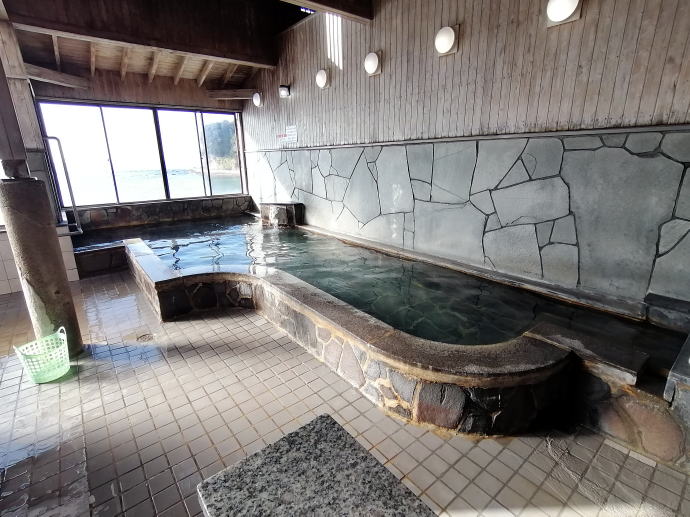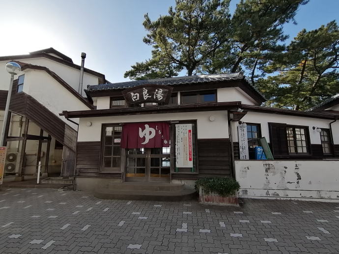 2023年、早くも師走を迎えて右往左往。 我がバイクチーム総出の和歌山遠征訓練に合わせて、 私は一足早めに白浜温泉へと遠征しております。 温泉サムライさん、バイクの練習ですか? いえいえ、温泉に浸かって英気を養いに来ました。 一泊目に白浜温泉『湯快リゾートホテル彩朝楽』で賑やかに宿泊し、 二泊目は白浜温泉『ホテル花飾璃』で静かに過ごします。 宿泊宿のレポートはそれぞれに立ち上げるとして、 日中の昼間は日帰り入浴施設へと湯めぐりです。 さて、今から訪れるは、白良浜に面する共同浴場『白良湯』 『崎の湯』と並んで白浜温泉にある有名な共同浴場で、 昔ながらの番台がある銭湯のような温泉だという。 ![]() 和風モダンの洒落た建物の共同浴場の側面に 数台停められる駐車場があります。 口コミによると、口うるさい女性従業員が立っているとのこと…。 ![]() 立ってはいますが、何も言われることもなく浴舎建物へ。 裏に白良浜があるため無断駐車が多いから監視しているのかもですね。 古風な建物ですが、それほど古さや汚さは感じません。 ![]() 古い昔の学校のような雰囲気で 多くのガラス窓からは外光が差し込み心地よい。 番台は二階にあるということで階段を上って向かいます。 ![]() 番台には駐車場で監視されていた女性スタッフが対応しています。 入湯料金大人420円を支払って脱衣場へ。 木製のロッカーや床材を使用した脱衣場もよい雰囲気です。 ![]() 長方形の浴室空間に長細い変形湯船が壁沿いに鎮座する。 手前から源泉が注がれて温度も熱く、 奥に行くほどに温度が低いそんな湯船です。 ![]() ほぼ無色透明のお湯からは淡い鉱物の香りに包まれる。 軟らかい食塩泉でかけ流しの温泉はチョット熱めの湯船です。 実測温度46.0度は源泉供給口の近くです。 ![]() 窓際の位置に移動すれば白良浜が一望できるナイスビュー。 夏のような日差しが白い砂浜に反射して美しい。 温泉に浸かりながらこんな景色が望めるなんで幸せですね。 ![]() 実測温度は43.0℃と入湯しやすい温度になっています。 もう少し低温湯船に設定していただけたら となりの湯船と温冷交互浴なんて楽しみ方ができるんですがね。 ![]() 浴室天井は吹き抜けで湯気も良く抜けてのぼせることもなく、 木造製で視覚的にも楽しめました。 存分に入湯を楽しんでので白良浜へお散歩タイム。 ![]() ![]() 12月ではあるが真夏のような日差しでポカポカ陽気。 さすがに泳いでいる人はいませんが、 犬の散歩や観光客の姿がチラホラ見受けられました。 白浜温泉で宿をお探しの方、 宿に直接予約するよりもじゃらんnetや楽天トラベルを介してする方が ポイントが使えてお安く泊まれることが多いですよ。↓