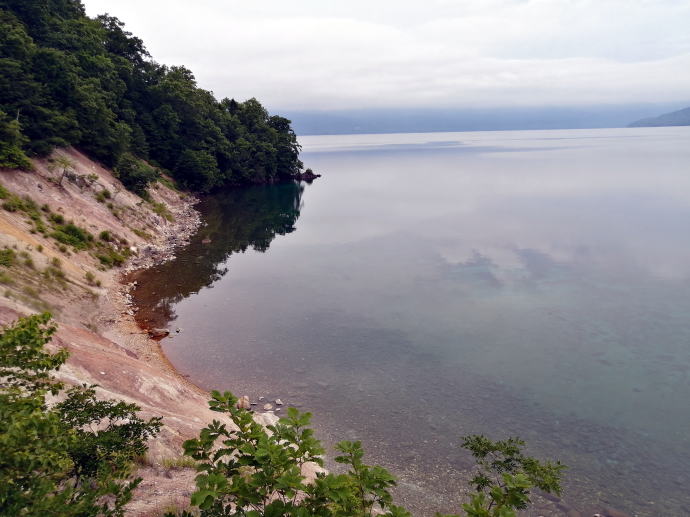 2023年夏、全日本トライアル選手権出場と カムイワッカ湯の滝を目指す旅の始まりです。 7/9敦賀発苫小牧着の新日本海フェリー『すずらん』へ乗船です。 7/10、20:30苫小牧東港に到着した『すずらん』号から 然別峡温泉『鹿の湯』を目指して夜の北海道をドライブします。 キタキツネよりもたぬきやアライグマの姿をよく見かけます。 初日の宿『ぬかびら源泉郷温泉糠平観光ホテル』を早朝にチェックアウトし、 向かった先は、屈斜路湖畔に佇む和琴温泉『露天風呂』。 ここは和琴半島に点在する温泉群の一部なのだ。 ![]() いつでも開放された無料の和琴半島公共駐車場へ車を停めて、 ここからは徒歩にて温泉へと向かいます。 今日も曇りでヒンヤリとした気候はさすが北海道ですね。 ![]() 和琴半島にはいくつもの露天風呂や共同浴場、 野天風呂に源泉地など多種多様な温泉が楽しめる。 しかもお財布に優しい無料なのですが、探索するのが大変そう。 ![]() まずは一湯目の混浴の和琴温泉『露天風呂』へ到着です。 三日月形の岩風呂は何の囲いもなく周辺から丸見え状態。 観光客や散歩の方が訪れて見学されていますが、入湯するのは恥ずかしい。 ということで、和琴半島の温泉群を先に調査してから最後に入湯する計画に変更。 湖畔を中国人観光客をはじめ個人での旅行者や散歩を楽しむ方でにぎわっている。 露天風呂を横目に半島沿いに延びる自然探勝路を速足で温泉探索です。 ![]() うっそうと茂る原生林に近い森の中を歩きやすい山道が続いています。 さすがにここまでは中国人観光客も入ってこないようでとっても静かです。 右手に広がる屈斜路湖も鏡のような水面で美しい。 ![]() 小さな和琴半島ですが、外周約2.5㎞の自然探勝路が整備されています。 心細くなりながら山道を進むと、目前に一軒の平屋の屋根が見えてきた。 廃墟っぽい建物が和琴温泉『共同浴場』だ。 ![]() 蚊やアブなどの襲撃もなく、心地よい気候で歩きやすい。 森の中から時折望める屈斜路湖の姿が素晴らしい。 湖岸沿いに続く自然探勝路をオヤコツ地獄目指してさらに進みます。 ![]() 共同浴場から十数分ほど歩いたところでオヤコツ地獄展望台に到着です。 と、展望台では一人の女性が屈斜路湖を眺めて佇んでいます。 お話を伺ったところ東京から来られた一人旅らしい…。 ![]() 私:「この崖下に温泉が湧いているから一緒に行ってみる?」 女性:「はい、行ってみたいです。」 ということで続きはオヤコツ地獄のページへ ![]() 自然探勝路から湖畔に降りる道を探していると、 下に降りるためのトラロープが縛ってあるのを見つけて降りてみることに。 下に続く5メートルほどの急斜面を慎重に降りて行きます。 ![]() 下に降りた場所から上を見上げてみると御覧のような危険な急斜面です。 トラロープも劣化があって信用できないので、 行かれる方は用心してください。 ![]() 右にあるのか、左にあるのか右往左往、 湖畔の砂浜は倒木や岩などで歩けないので、 履き物を脱いで屈斜路湖の中を歩いて温泉探索を始めます。 ![]() 裸足で歩いていると砂利の中に暖かさを感じます。 どうやらこの玉石の砂利の中から温泉が染み出しているみたい。 どこを歩いていても温かく気持ち良いのだ。 ![]() 試しに温度を測定してみれば実測温度33.0℃、 湖の水質も御覧のようにとても良く、 このままここで泳いでみたくなったが、さらに温泉探索を進めます。 ![]() 結局あのトラロープの崖を降りて右にしばらく進んだところにありました。 軽く岩で囲われたあたりの水がとても暖かい。 右の小さな水路から熱い温泉が流れ込んでいる。 ![]() 実測温度は58.2℃、うーんこれは立派な温泉ですね。 泉質は単純泉と思われる無色透明の湯は淡い鉱物香を伴いコンコンと湧き出している。 全身浸かれるような湯船はないけれど足湯で愉しんでみた。 ![]() 源泉の流れ込む熱いところは避けて、 心地よい温度の場所で足湯を楽しみます。 上部を木々が覆って薄暗く、前面の眺望もイマイチなのが玉に瑕。 ![]() 右となりにはポンプ小屋?なのか、 今は稼働していない廃墟のような場所の横にあるからなんだか気持ち悪い。 これならさっきの玉砂利温水地帯を歩いている方が心地よいかもです。 ![]() ポンプ小屋から無理やり自然探求路へよじ登ってみた。 こんな場所に出てきたので行かれる方は この景色の場所から湖畔に降りると近道かもですね。 次は、最初に寄った『和琴温泉 露天風呂』 その後、『池の湯温泉 露天風呂』へと向かいます。 ここまで読んで頂いた皆様にだけお伝えします。 屈斜路湖周辺でお泊りをご検討されている方は じゃらんnetにおいて無料で空室確認ができる機能がお勧め。 煩わしい電話での問い合わせは気が引けるあなたにお勧め。 宿泊料金もポイントが使えてお安く泊まれるなど 私はいつも確認してから宿泊予約しています。 時には楽天トラベルにおいても格安プランや 高還元ポイントがゲットできるのであわせてチェックしま