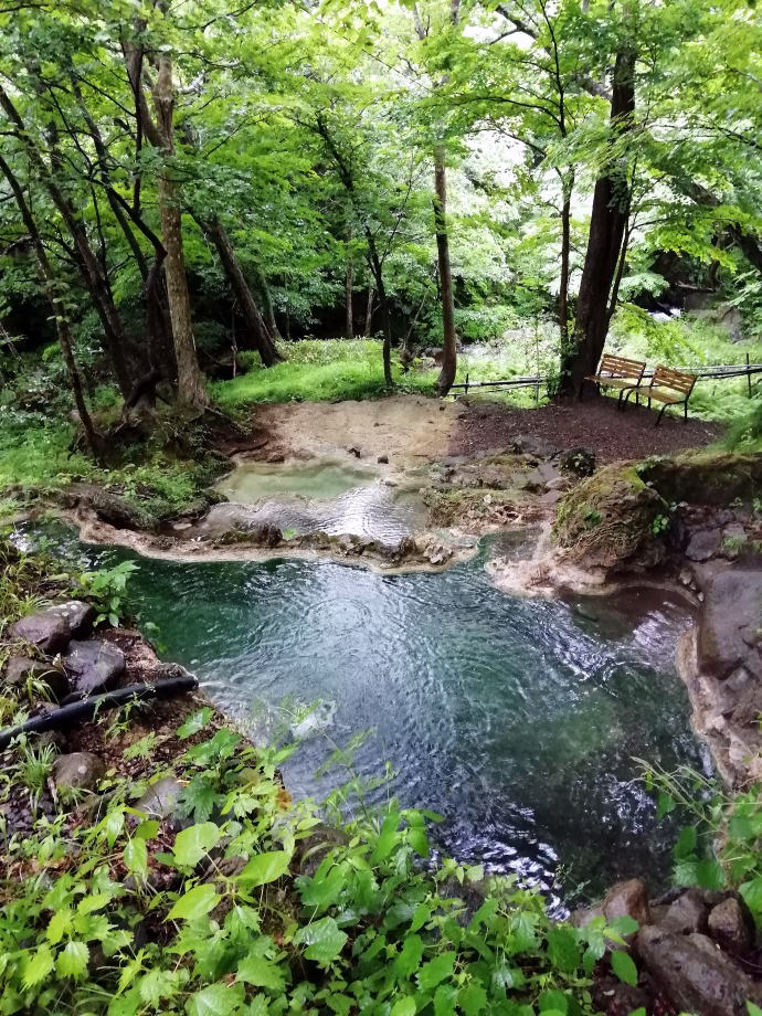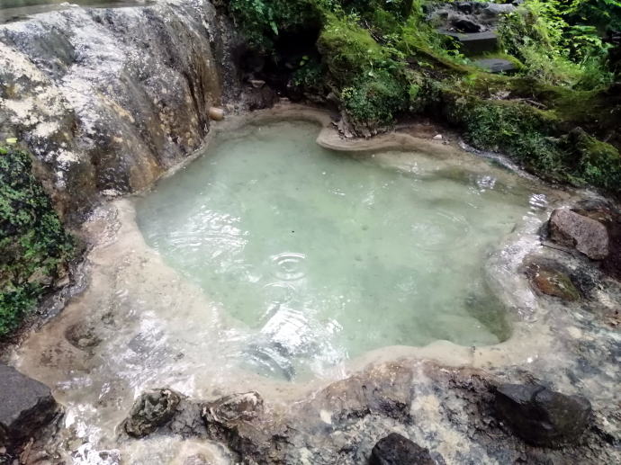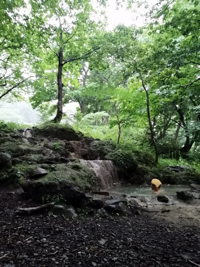 2023年夏、全日本トライアル選手権出場と カムイワッカ湯の滝を目指す旅の始まりです。 7/9敦賀発苫小牧着の新日本海フェリー『すずらん』へ乗船です。 7/10、20:30苫小牧東港に到着した『すずらん』号から 然別峡温泉『鹿の湯』を目指して夜の北海道をドライブします。 キタキツネよりもたぬきやアライグマの姿をよく見かけます。 二日目の宿『オーロラファームビレッジ』を早朝にチェックアウト後、 道中、温泉に立ち寄り湯しながら向かったのが、 旅の目的地『カムイワッカ湯の滝』 知床五湖から先は今も昔もダート道。 約10キロの道のりは30分ほど時間を要する。 30年前の北海道では珍しくないが、今ではダート道も少なくなりました。 カムイワッカ湯の滝への入場は2006年の世界自然遺産登録から規制がかかり、 さらには事故や落石が多く、入り口から約100メートル先の一の滝までしか行くことができず、 長年入場制限かかけられ自由に出入りできなくなっていましたが、 2023年その制限が大幅に解除された。 そんな情報をキャッチして27年ぶりに訪れるカムイワッカ湯の滝、 さてどのよう状況になっているのか楽しみです。 ![]() 27年ぶりに訪れた『カムイワッカ湯の滝』は、道中なんと野生のヒグマに鉢合わせ。 四の滝は先の崖崩れで滝つぼが完全に消滅していた。 人生最大のピンチを乗り越え、そそくさと本日の宿『ホテル地の崖』へ逃げ込んだ。 ![]() 御覧のような雨模様、おまけに濃霧も発生して写真写りの悪いこと。 一見、学校の校舎のようにも見える『ホテル地の崖』は、 おそらくは日本最東端域に位置するホテルだろう。 ![]() 今からご紹介する混浴露天風呂『岩尾別温泉 三段の湯』は ホテル駐車場から谷間に伸びる細い山道を歩いて向かいます。 連日の雨の中、傘をさして朝の散歩となりました。 ![]() しばらく歩くと木製の橋がありました。 昨日、カムイワッカ湯の滝で出会ったヒグマの姿が脳裏をかすめるが、 さらに奥地へと探索してゆきます。 ![]() 『これだ!』とつぶやきながら到着した『三段の湯』は 想像していたものとはかけ離れた素晴らしい野天風呂である。 当然、脱衣場などはないのでベンチを利用させていただいた。 ![]() 手持ちのカバンを土台にし、 その上に浴衣を置いてさらにその上から傘で覆います。 浴衣なので少々濡れても大丈夫なのです。 ![]() ここは知床世界自然遺産の真っ只中にある野天風呂、 雄大な自然の中に佇むとても造形美にあふれた『三段の湯』 もちろんお湯も湯船から溢れ出す源泉かけ流し。 ![]() 混浴なのですが雨が降り続く野天風呂に訪れるものなし。 上段から熱い源泉がかけ流されているため、 下段に下がるほど湯の温度は低くなる。 ![]() 下段の湯船はシャコ貝の貝殻のような湯船に湯が溢れ出す。 温泉に含まれる成分の一部が湯船に析出して造形美を増しているようです。 真夏の7月ですが、気温は15度前後と寒いので湯船に滑り込む。 ![]() あー、かなりぬるめやけど気持ちいい〜 実測温度35.4度と体温より低くて身体は温まらないが心は温まる。 湯船の底には湯の華か自然の砂か不明だが堆積が確認できます。 ![]() 中段の湯船は変形したひょうたん型で神秘的。 湯船の周りにはコケや小さな植物が植生してその美しさを増している。 湯船の湯色も若干違って見える不思議な湯に浸かります。 ![]() しっとりとした浴感はお肌を優しく包み込んでくれるよう。 実測温度は40.4度とぬるめの湯だがのんびりゆったり湯を愉しめる。 なんて気持ちの良い湯なのでしょうか〜 ![]() きっと熱いんだろうなぁ、と思いつつ上段の湯船へ。 牡蠣の貝殻みたいな形した湯船は緑色に見える湯に満たされる。 源泉が直接注ぎ込まれる湯船だが入湯できそうな温度です。 ![]() お湯を口に含めば塩辛い食塩泉で体の芯までよく温まる。 さらに実測温度45.9度でその相乗効果も相まってのぼせそう。 それにしてもきれいに手入れされている野天の露天風呂、 ![]() 『ホテル地の崖』で伺ったところ、 ホテル所有の野天風呂ではないが定期的に清掃や整備をしているという。 こんな素晴らしい温泉に無料で利用できるとはいやはや素晴らしい〜。 次は岩尾別温泉『滝見の湯』へ向かいます。 ここまで読んで頂いた皆様にだけお伝えします。 ホテル地の崖でお泊りをご検討されている方は じゃらんnetにおいて無料で空室確認ができる機能がお勧め。 煩わしい電話での問い合わせは気が引けるあなたにお勧め。 宿泊料金もポイントが使えてお安く泊まれるなど 私はいつも確認してから宿泊予約しています。 時には楽天トラベルにおいても格安プランや 高還元ポイントがゲットできるのであわせてチェックしましょう。 ↑空室確認もWeb上で瞬時にわかるすぐれもの 一度お試しあれm(_ _)m |