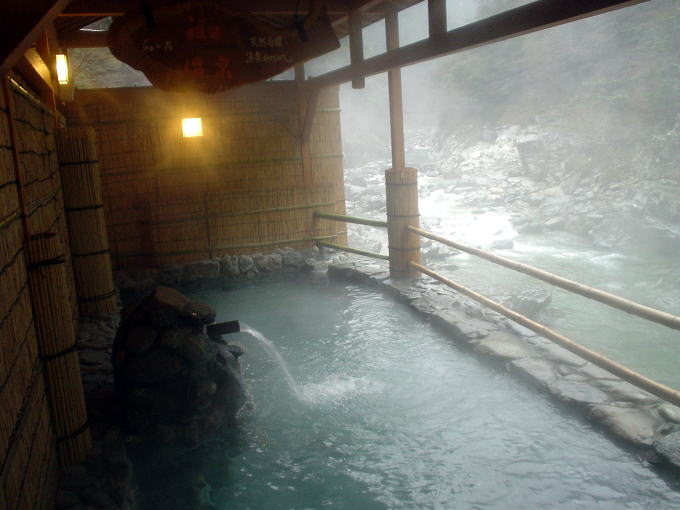 祖谷川渓谷に面して設置された露天風呂は、