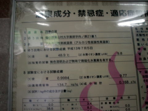 | 温泉の特徴 | 泉温48.9度/pH9.8/成分総計0.168g/kg |