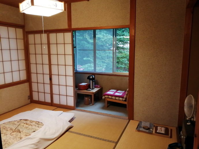 2019年8月、『野天風呂を探るツアー』と銘打って目指したのは…、 本日、ツアー二日目の宿泊地として選んだ温泉旅館、 到着したのが、コチラ『新平湯温泉 静岳館』です。 ![]() 冬場はスキー客でにぎわう奥飛騨温泉郷ですが、 夏場は登山客でにぎわっているのでしょうか? 私は夏場の避暑地として、冬場の雪見温泉を楽しんだりとよく訪れます。 この辺りは趣ある民宿がたくさんあって宿泊料金も手ごろ、 なんと混浴風呂を装備する温泉旅館も多く、 温泉巡りも気分がはずみます。 家族で経営するコチラ民宿は、 ネットによる空室確認やオンライン予約などが充実しています。 耳の遠い宿屋のお年寄りが電話で予約を取っているなんてありません。 ![]() 若干古びた木造二階建ての民宿は良い雰囲気を醸し出しています。 広い玄関は総木造りで開放感があってこれはもう立派な旅館です。 美人女将から宿泊の受付やお風呂の場所を教えてもらって客室へ案内していただいた。 ![]() 案内された客室は二階角の六畳部屋、 一番安い客室を予約していたのですが、 お宿のご配慮でグレードアップした頂いた。ありがとう。 ![]() 標高は1000メートル以上ある高所温泉地なのでエアコンは必要ないだろう。 備えてあった浴衣に着替え、窓の外に広がる緑を望みながらお茶をいっぷく、 心も落ち着いたところで…、それでは温泉へ向かいましょう。 ![]() 一階にある脱衣場は正にシンプルイズベスト。 必要最小限の無の境地的な空間で、 心も無にして温泉に挑みます。 ![]() 内湯扉を開けると、 手作り感タップリのレンガ積み内湯浴室に、 四角く小さな湯船が湯を優しく溢れさせ迎えてくれた。 ![]() 無色透明な源泉かけ流しの湯はお肌に優しい感じのナトリウム塩化物泉で、 淡いイオウの香りと炭酸水素ナトリウムも含まれているのでツルスベ感も享受できる。 ちなみに湯船の実測温度は43.0度です。 ![]() 洗い場もこじんまりとしており、 宿泊者が多数いる場合は混むかもしれませんね。 この日は空いているのか私一人の貸し切り湯。 43度の食塩泉は身体の芯まですぐに温めてくれる。 のぼせる前に露天風呂へと移動します。 扉を開ければそこは露天風呂。 ![]() 見てくださいこの露天風呂! 岩で組まれた円形の湯船は、山の緑に囲まれて森林浴も楽しめる。 湯は当然ながら完全かけ流しで静かな時間だけが流れています。 ![]() 丁度、民宿の裏庭にある露天風呂は、 男女別内湯の扉を開くとこの露天風呂に通じているので混浴です。 アブなどの虫も少なく静かで落ち着いた雰囲気にうっとり。 ![]() 源泉が注がれる湯の実測温度は50.5度、触ると熱い。 湯船の実測温度が40.2度と快適です。 湯船の中や周辺環境もきれいに整備されとっても心地よい。 入浴もそこそこにして部屋に戻ってちょっと一服。 夕食は一階の広間で頂きます。 ![]() 前菜に出てきたのがコチラ。 色どりもきれいで手の込んだお料理は味付けも良くおいしく頂きました。 女将さんおススメのハートランドビール(450円)を注文しました。 ![]() ![]() ウド、ドクダミの葉、なんとかの花の天ぷら。 ドクダミの葉の天ぷらは独特の風味で初体験のお味です。 たくさんは食べられないかも。 ![]() ニジマスの山椒蕎麦味噌焼き ![]() なべ焼きは、ほうば味噌に飛騨牛 ![]() 自家製のそば粉を使用したご主人こだわり手打ちそば そばの風味がとてもよく感じられた。 ![]() お蕎麦の薬味 ![]() ![]() そばプリン グルメレポーターはできないので 画像からそのお味を感じ取ってください。 食べ過ぎてしまうほどにおいしい夕食を頂いた後は、 もう一度温泉へと向かいます。 空いているときはいつでも使える無料の貸し切り風呂へ。 ![]() 脱衣場はとても小さな家庭用、 貸切家族風呂なのでこれで十分なのです。 準備を整えて貸し切り内湯の扉を開きます。 ![]() 正方形の小さな湯船はもちろん源泉かけ流し。 家族でのんびりとまたは一人で気兼ねなく温泉を愉しむことができる。 レンガの階段を昇って扉を開くとそこは混浴露天風呂です。 ![]() ちなみに夜の露天風呂はこんな感じ。 小さな照明がぼんやりと岩風呂を浮かび上がらせている。 静寂な夜の帳に浸かる温泉湯船もこれまた最高ですね。 明日の温泉巡りに備えて早めに就寝です。 早朝に目が覚めるので温泉へ直行します。 朝のヒンヤリとした空気の中、のんびり温泉に浸かるのは贅沢極み。 ![]() 朝食はコチラ 火であぶったほうば味噌と油揚げが香ばしい。 濃い目の味付けは食欲が進みます。 新平湯温泉は個性的な民宿がたくさんあって 温泉以外の楽しめる部分が盛りだくさん。 家族や仲良しグループでの温泉旅行にお勧めですね。 新平湯温泉静岳館で宿をお探しの方、 宿に直接予約するよりもじゃらんnetや楽天トラベルを介してする方が お安く泊まれることが多いですよ。↓