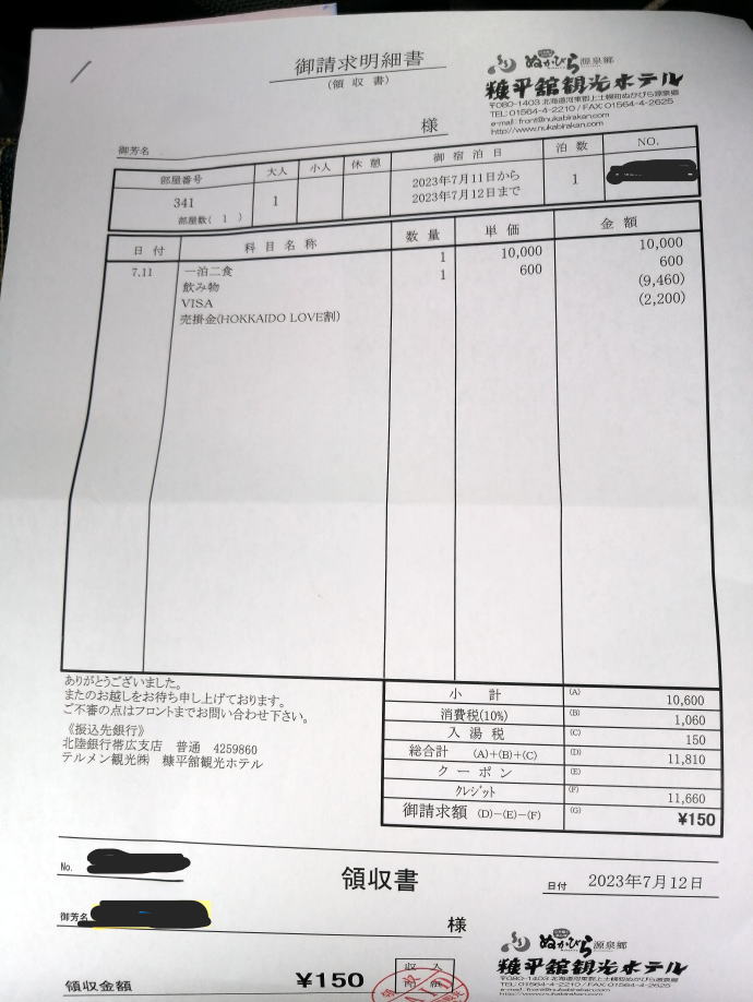 | 入湯日付 | 最終入湯日:2023年7月12日(水)から13日(木)曇り |