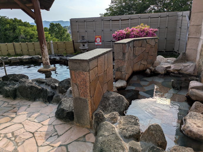 2025年世界選手権トライアル日本大会観戦ツアーへ出発です。 場所は栃木県にある『ツインリンクもてぎ』 年に一度のイベントは世界チャンピオンなど有名選手が集まる熱い大会だ。 世界選手権トライアルの絶対的王者トニー・ボウと その後を追うマルセリ・ガブリエルの練習風景です。 この日はコンディションの悪い岩の上が濡れた状態でミスが連発していました。 ![]() 競技前日の練習風景を見学して、 我々と歴然たるテクニックの違いを思い知らされた驚愕の世界。 仕方ないよと、向かった先は近傍にある『ごぜんやま温泉 四季彩館』 ![]() ごぜんやま温泉は、1995年(平成7年)に開館したそうで、 今年で開館30周年を迎えた結構古めの温泉施設。 なんと茨城県内で初めての日帰り入浴施設とされています。 ![]() 入り口で靴を脱いで入場します。 フロントにて入湯料金800円を支払って奥にある脱衣場入り口へと到着です。 本日の男湯は『三王の湯』ということで早速暖簾をくぐります。 ![]() 手狭な脱衣場で準備を完了して内湯扉を開きます。 二面の壁が大きな窓ガラスで構成され、とても明るい内湯空間に 左に窓際にある『くの字』の湯船に右に小さめの湯船がひとつ。 窓際にある湯船は循環加温式の滅菌ありの運用で、 重曹成分による若干のツルスベ感のある湯は、 体感温度は約41℃ときわめて普通の湯使いである。 右の小さな四角の湯船は『源泉湯』と称した低温の湯船。 源泉かけ流しではなく、循環加温式の消毒された湯は、 温度をかなり低くした源泉風の湯船であった。 ![]() 場所を露天風呂へと移します。 岩風呂に屋根付き、風光明媚な景色が目に飛び込んできます。 湯は内湯と同じ循環加温式、塩素滅菌も感知できました。 ![]() 右側の小さくて浅い湯船は打たせ湯のエリア、 故障中でその打たせ湯は機能していなかったように記憶があります。 仲間と本日の世界の走り談義で盛り上がります。 ![]() 実測温度は41.4℃と内湯主浴槽とほぼ同じ運用でした。 温泉マニア向けではない温泉ですが、 地元住民にとってオアシス的な社交スペースではないでしょうか。 ![]() 休憩処も広くてたくさんのテーブルが並べられ田舎チックな空間。 カラオケ大会も開催できそうな演台までイベンド事は楽しめそうですね。 休憩してから再入湯もできるからいいかもしれない。 ![]() プチ道の駅的なフロント前スペースには 農産物や特産品、お土産的な品々が並べられ購入することができる。 買い物しなくても視覚的にも楽しめるこんなスペースもありかもですね。 那須湯本温泉で宿をお探しのあなた。 宿に直接予約する前にじゃらんnetや楽天トラベルで予約する方が ポイントが使えてお安く泊まれることがありますよ。 空室確認もWeb上で簡単に確認できるすぐれもの↓