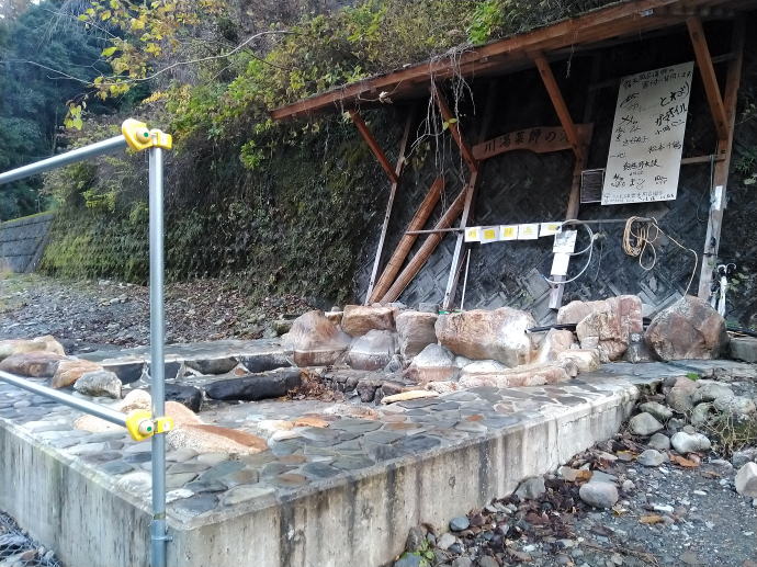 | アクセス | 電車:新宮駅から、川湯温泉バス停まで所要時間は約1時間下車徒歩2分 車:阪和自動車道~南紀田辺IC~上富田ICを降りて国道311号で約70分 |