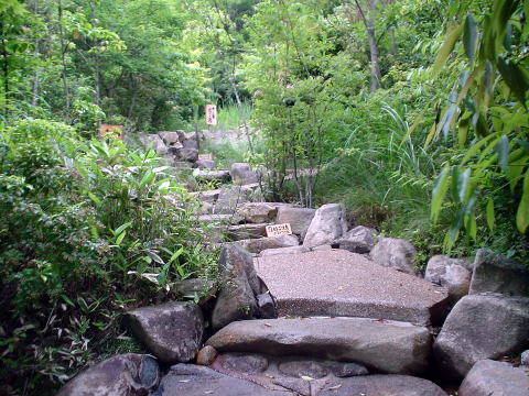 山の上にも露天風呂があるそうなので置かれたスリッパを履いて石段を登ると、