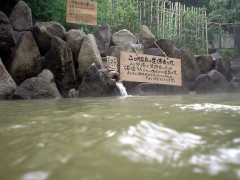 湯口は中央部に1つと奥に1つあってナミナミと注がれています。