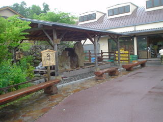 入口には岩で組まれた立派な足湯があり、無料で誰でも自由にゆっくりすることができる。湯は無色透明で温泉が使用されているかは不明です。