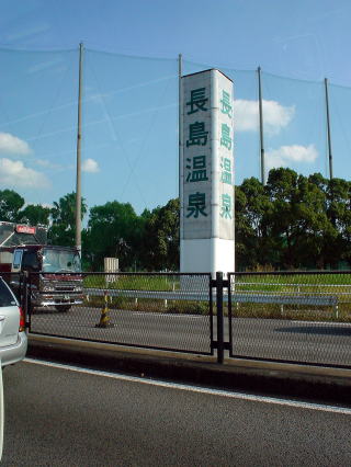 | 国道23号線、木曽川と揖斐川を渡る中間点、ちょうど中州のようになったところにあるオートレストラン長島は、24時間営業のゲームセンターやレストランを併設する天然温泉がある。 長島温泉は、1963年に天然ガス試掘中に見つかったそうだ。北海道の長万部温泉も同じ起源だ。 国道の南側にある赤い大きな看板には「天然温泉」の文字があるので、そこに温泉施設がることが分かる。 |