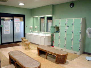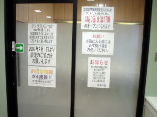 ![]() 清潔な脱衣場 ![]() 浴室入口にはたくさんのお知らせがある。 |