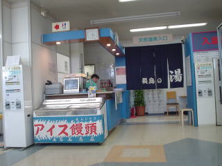 施設内は右側がゲームセンターで左側がレストランとマッサージルームがある。私たちのお目当て、温泉への入口は中央部にあり、入湯券を券売機で購入し受付で渡します。 | ||||