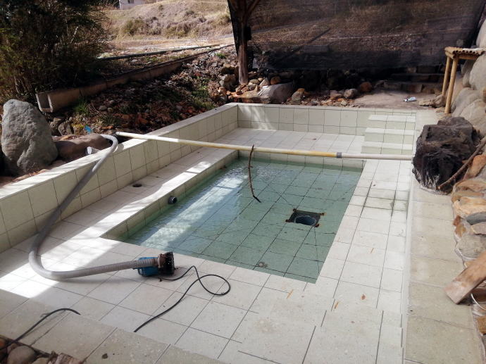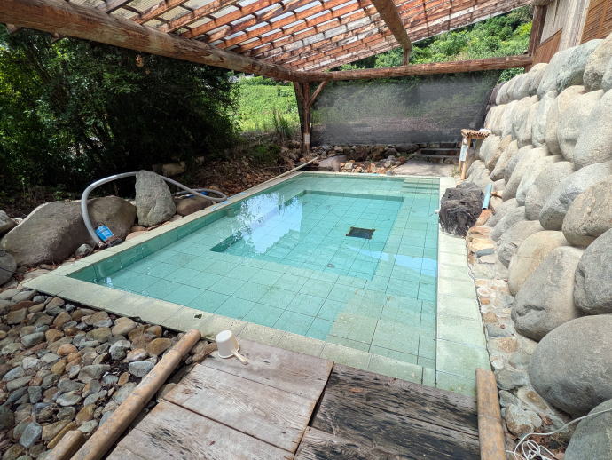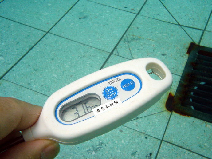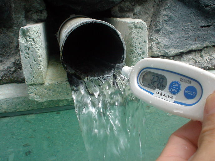 源泉名:温湯2号(大塚温泉)/泉質:アルカリ性単純温泉(低張性‐アルカリ性‐低温泉)/泉温約32.8℃/pH8.6/溶存物質計0.5g毎kg |