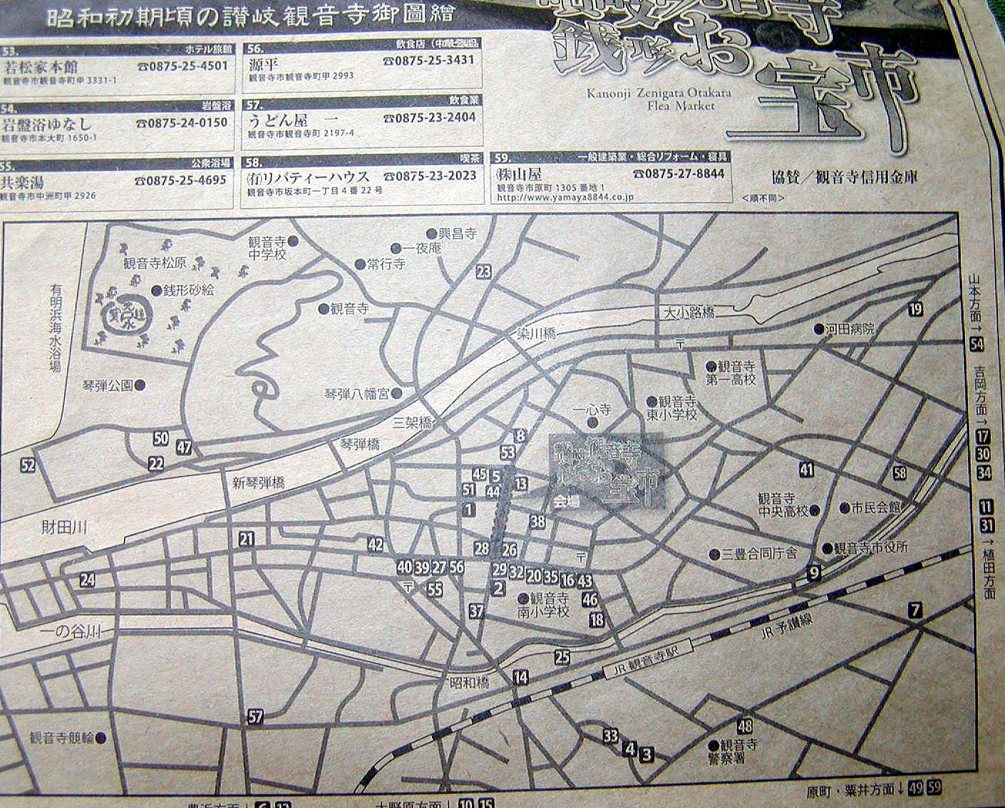 掲載されている寛永通宝が使えるお店の地図拡大図