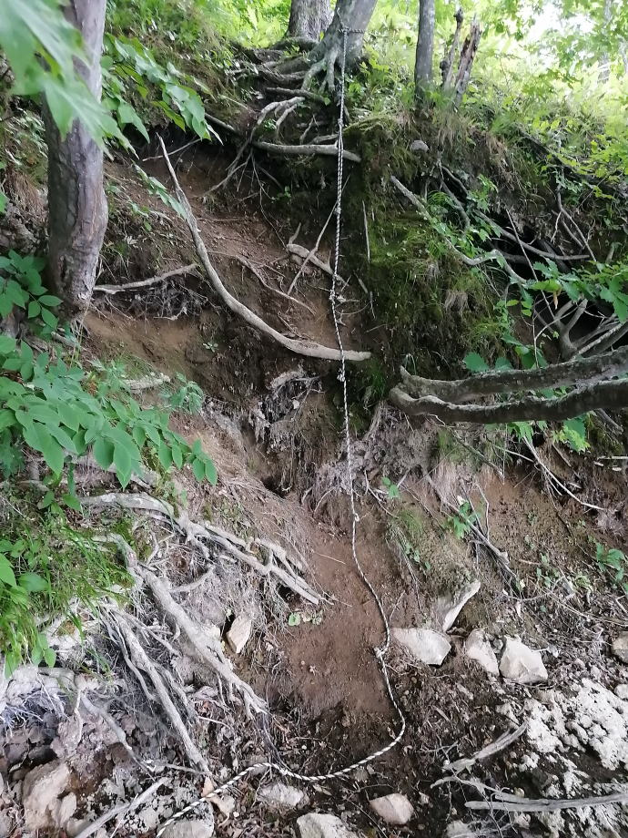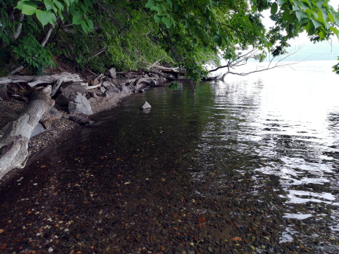 2023年夏、全日本トライアル選手権出場と カムイワッカ湯の滝を目指す旅の始まりです。 7/9敦賀発苫小牧着の新日本海フェリー『すずらん』へ乗船です。 7/10、20:30苫小牧東港に到着した『すずらん』号から 然別峡温泉『鹿の湯』を目指して夜の北海道をドライブします。 キタキツネよりもたぬきやアライグマの姿をよく見かけます。 初日の宿『ぬかびら源泉郷温泉糠平観光ホテル』を早朝にチェックアウトし、 向かった先は、屈斜路湖畔に佇む和琴温泉『露天風呂』。 ここは和琴半島に点在する温泉群の一部なのだ。 ![]() いつでも開放された無料の和琴半島公共駐車場へ車を停めて、 ここからは徒歩にて温泉へと向かいます。 今日も曇りでヒンヤリとした気候はさすが北海道ですね。 ![]() 和琴半島にはいくつもの露天風呂や共同浴場、 野天風呂に源泉地など多種多様な温泉が楽しめる。 しかもお財布に優しい無料なのですが、探索するのが大変そう。 ![]() まずは一湯目の混浴の和琴温泉『露天風呂』へ到着です。 三日月形の岩風呂は何の囲いもなく周辺から丸見え状態。 観光客や散歩の方が訪れて見学されていますが、入湯するのは恥ずかしい。 ということで、和琴半島の温泉群を先に調査してから最後に入湯する計画に変更。 湖畔を中国人観光客をはじめ個人での旅行者や散歩を楽しむ方でにぎわっている。 露天風呂を横目に半島沿いに延びる自然探勝路を速足で温泉探索です。 ![]() うっそうと茂る原生林に近い森の中を歩きやすい山道が続いています。 さすがにここまでは中国人観光客も入ってこないようでとっても静かです。 右手に広がる屈斜路湖も鏡のような水面で美しい。 ![]() 小さな和琴半島ですが、外周約2.5㎞の自然探勝路が整備されています。 心細くなりながら山道を進むと、目前に一軒の平屋の屋根が見えてきた。 廃墟っぽい建物が和琴温泉『共同浴場』だ。 ![]() 蚊やアブなどの襲撃もなく、心地よい気候で歩きやすい。 森の中から時折望める屈斜路湖の姿が素晴らしい。 湖岸沿いに続く自然探勝路をオヤコツ地獄目指してさらに進みます。 ![]() 共同浴場から十数分ほど歩いたところでオヤコツ地獄展望台に到着です。 と、展望台では一人の女性が屈斜路湖を眺めて佇んでいます。 お話を伺ったところ東京から来られた一人旅らしい…。 ![]() 私:「この崖下に温泉が湧いているから一緒に行ってみる?」 女性:「はい、行ってみたいです。」 ということで続きはオヤコツ地獄のページへ ![]() 自然探勝路から湖畔に降りる道を探していると、 下に降りるためのトラロープが縛ってあるのを見つけて降りてみることに。 下に続く5メートルほどの急斜面を慎重に降りて行きます。 ![]() 下に降りた場所から上を見上げてみると御覧のような危険な急斜面です。 トラロープも劣化があって信用できないので、 行かれる方は用心してください。 ![]() 右にあるのか、左にあるのか右往左往、 湖畔の砂浜は倒木や岩などで歩けないので、 履き物を脱いで屈斜路湖の中を歩いて温泉探索を始めます。 ![]() 裸足で歩いていると砂利の中に暖かさを感じます。 どうやらこの玉石の砂利の中から温泉が染み出しているみたい。 どこを歩いていても温かく気持ち良いのだ。 ![]() 試しに温度を測定してみれば実測温度33.0℃、 湖の水質も御覧のようにとても良く、 このままここで泳いでみたくなったが、さらに温泉探索を進めます。 ![]() 結局あのトラロープの崖を降りて右にしばらく進んだところにありました。 軽く岩で囲われたあたりの水がとても暖かい。 右の小さな水路から熱い温泉が流れ込んでいる。 ![]() 実測温度は58.2℃、うーんこれは立派な温泉ですね。 泉質は単純泉と思われる無色透明の湯は淡い鉱物香を伴いコンコンと湧き出している。 全身浸かれるような湯船はないけれど足湯で愉しんでみた。 ![]() 源泉の流れ込む熱いところは避けて、 心地よい温度の場所で足湯を楽しみます。 上部を木々が覆って薄暗く、前面の眺望もイマイチなのが玉に瑕。 ![]() 右となりにはポンプ小屋?なのか、 今は稼働していない廃墟のような場所の横にあるからなんだか気持ち悪い。 これならさっきの玉砂利温水地帯を歩いている方が心地よいかもです。 ![]() ポンプ小屋から無理やり自然探求路へよじ登ってみた。 こんな場所に出てきたので行かれる方は この景色の場所から湖畔に降りると近道かもですね。 次は、最初に寄った『和琴温泉 露天風呂』 その後、『池の湯温泉 露天風呂』へと向かいます。 ここまで読んで頂いた皆様にだけお伝えします。 屈斜路湖周辺でお泊りをご検討されている方は じゃらんnetにおいて無料で空室確認ができる機能がお勧め。 煩わしい電話での問い合わせは気が引けるあなたにお勧め。 宿泊料金もポイントが使えてお安く泊まれるなど 私はいつも確認してから宿泊予約しています。 時には楽天トラベルにおいても格安プランや 高還元ポイントがゲットできるのであわせてチェックしま